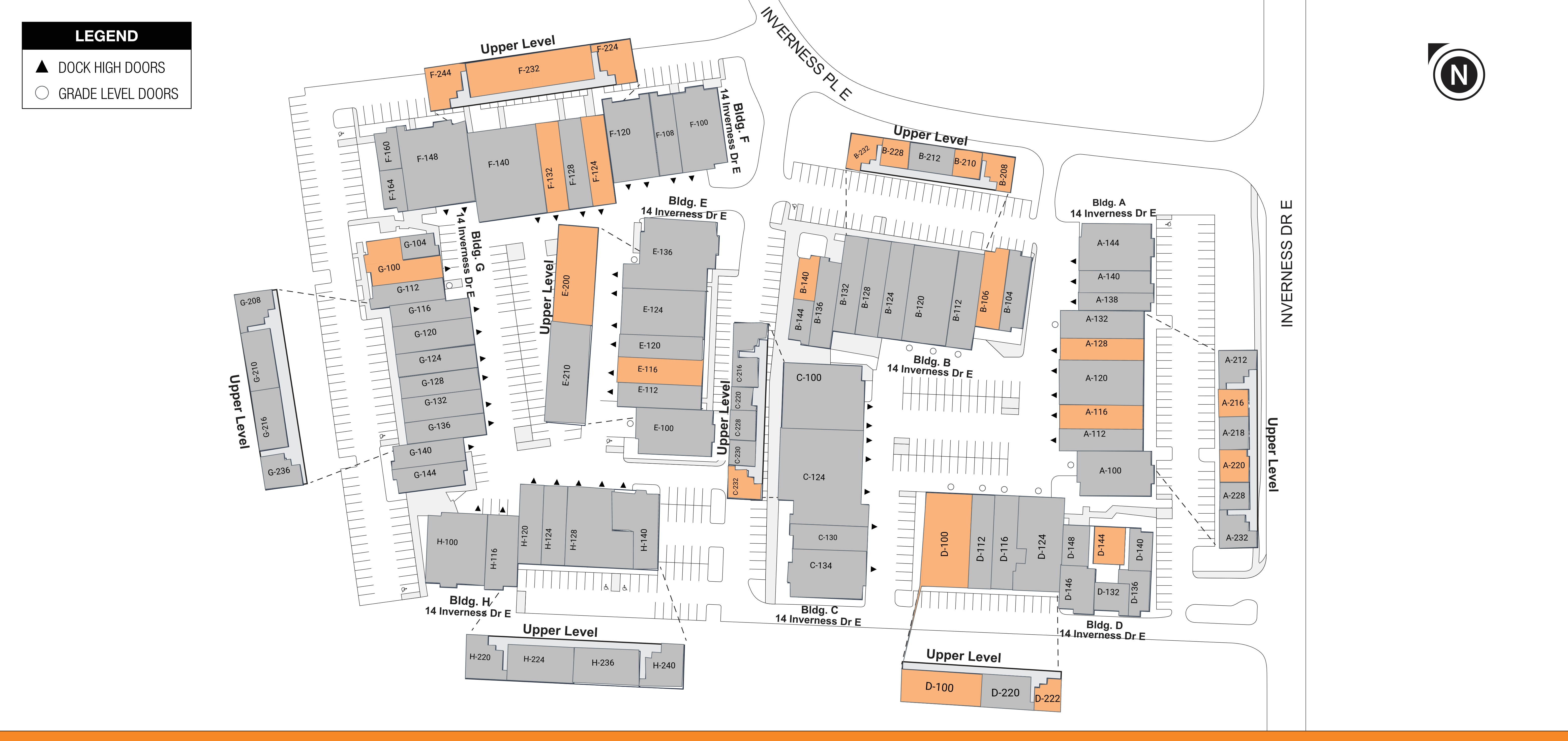 BUILDING | SUITE | Total size | Office Size | Office % | Type | Clear HT. | GL | DL | Floor plan | Photos |